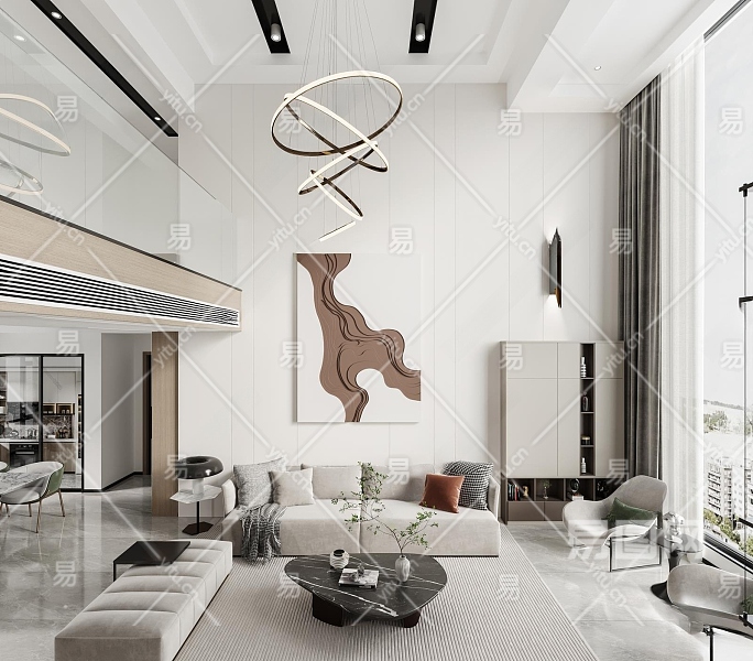 现代别墅客厅3D模型下载