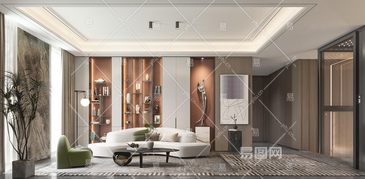 现代别墅客厅3D模型下载