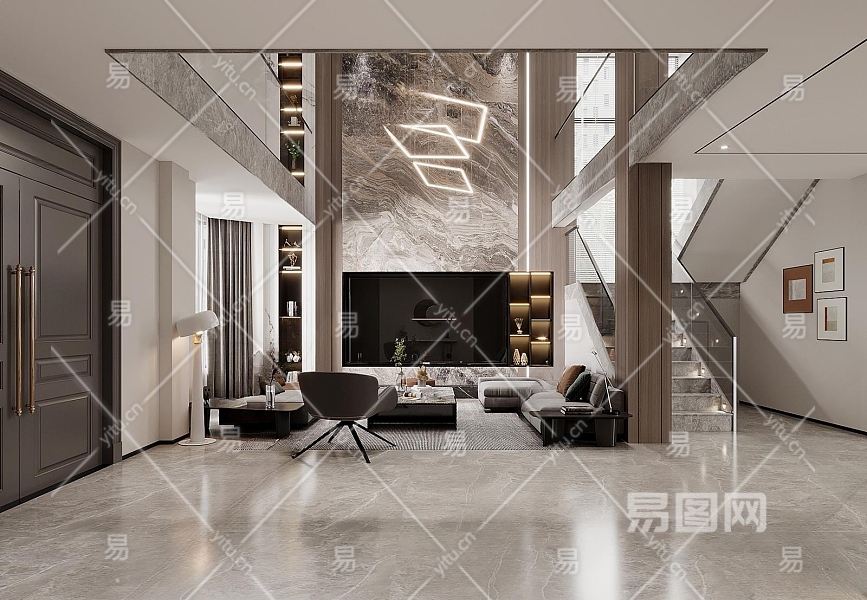 现代别墅客厅3D模型下载