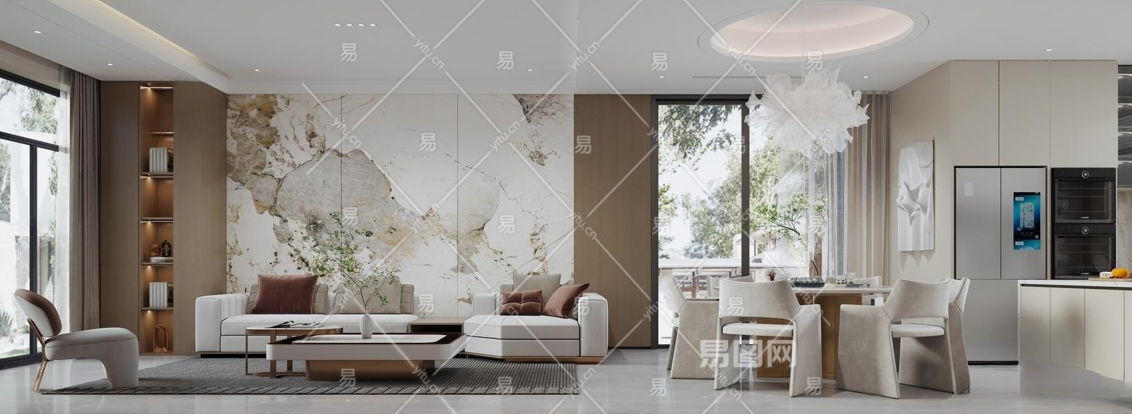 现代别墅客厅3D模型下载