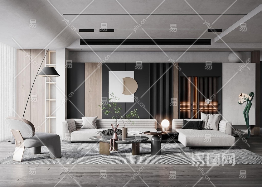 现代家居客厅3D模型下载