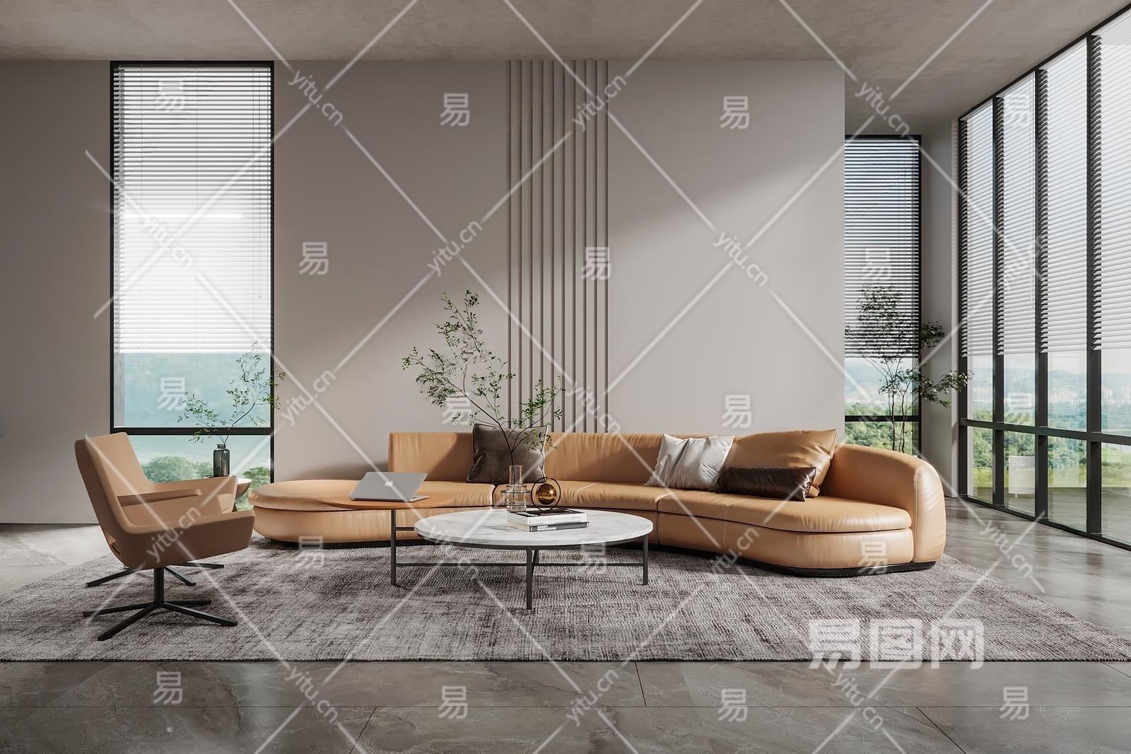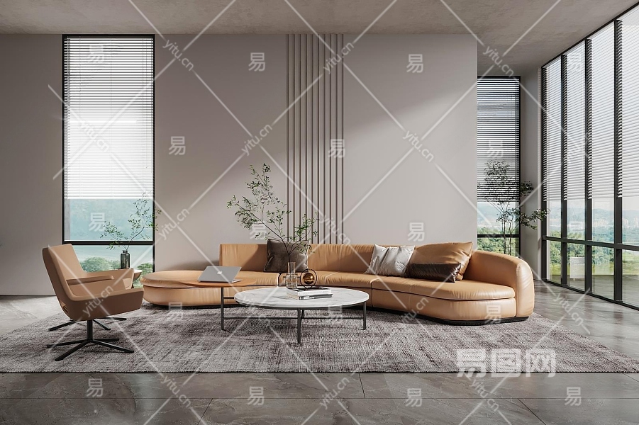 现代客厅3D模型下载