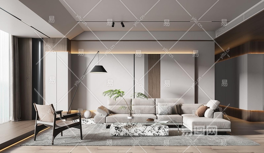 现代家居客厅3D模型下载