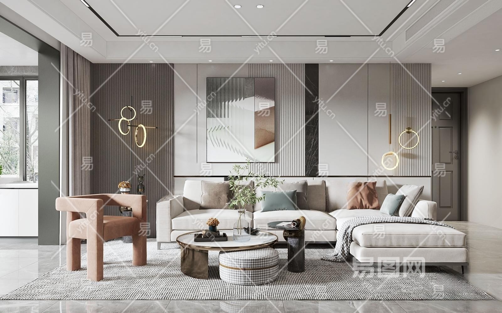 现代客厅3D模型下载