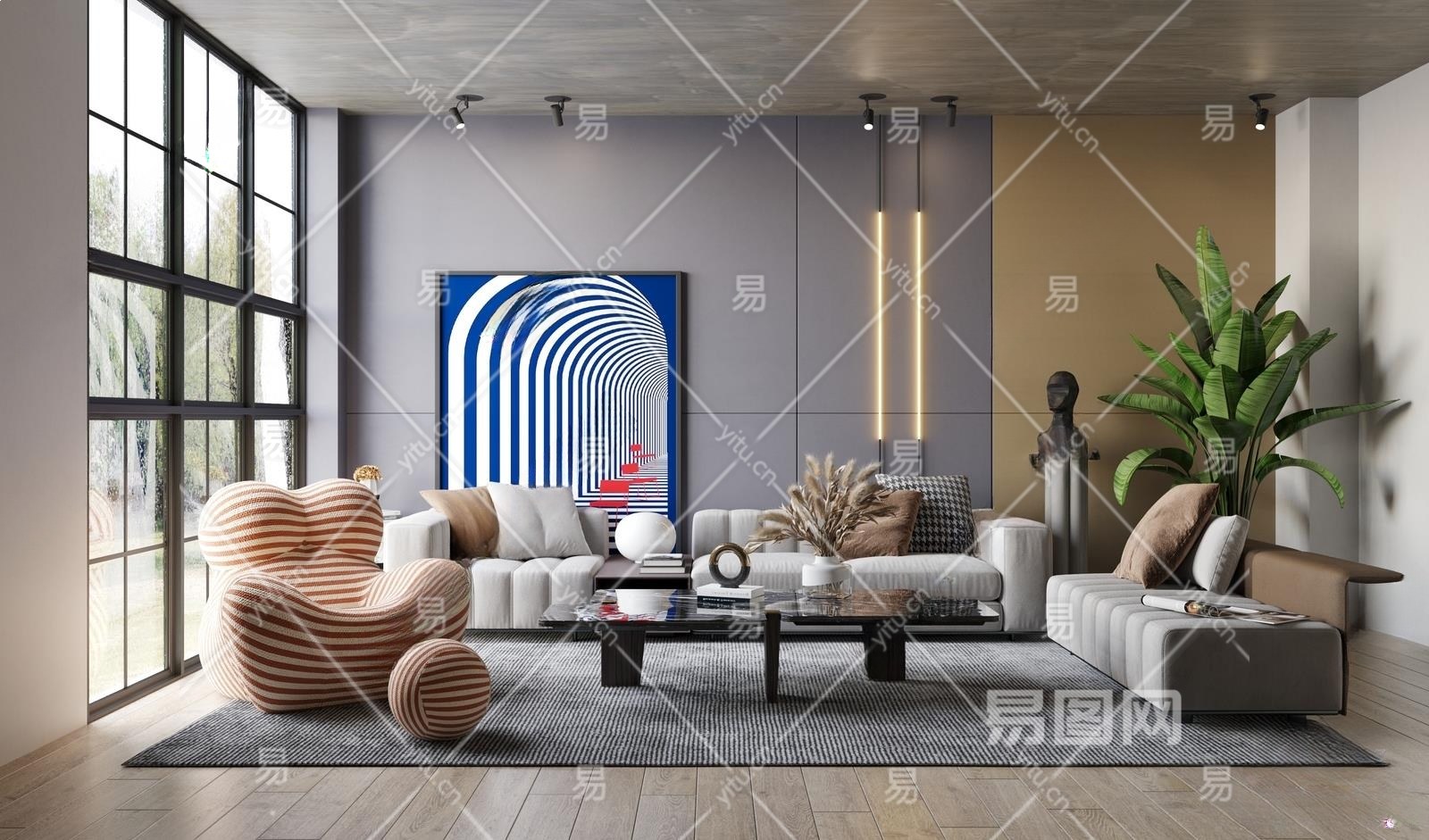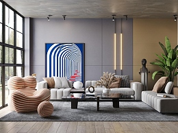 现代客厅3D模型下载