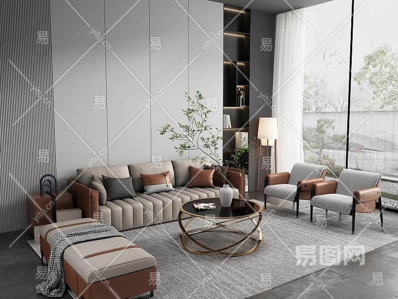 现代客厅3D模型下载