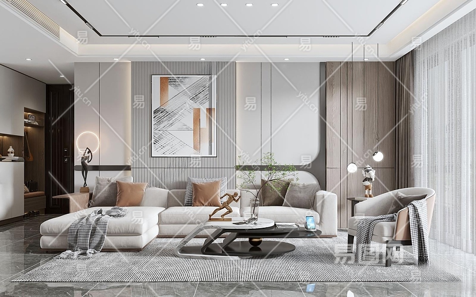 现代客厅3D模型下载
