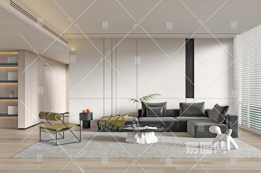 现代客厅3D模型下载