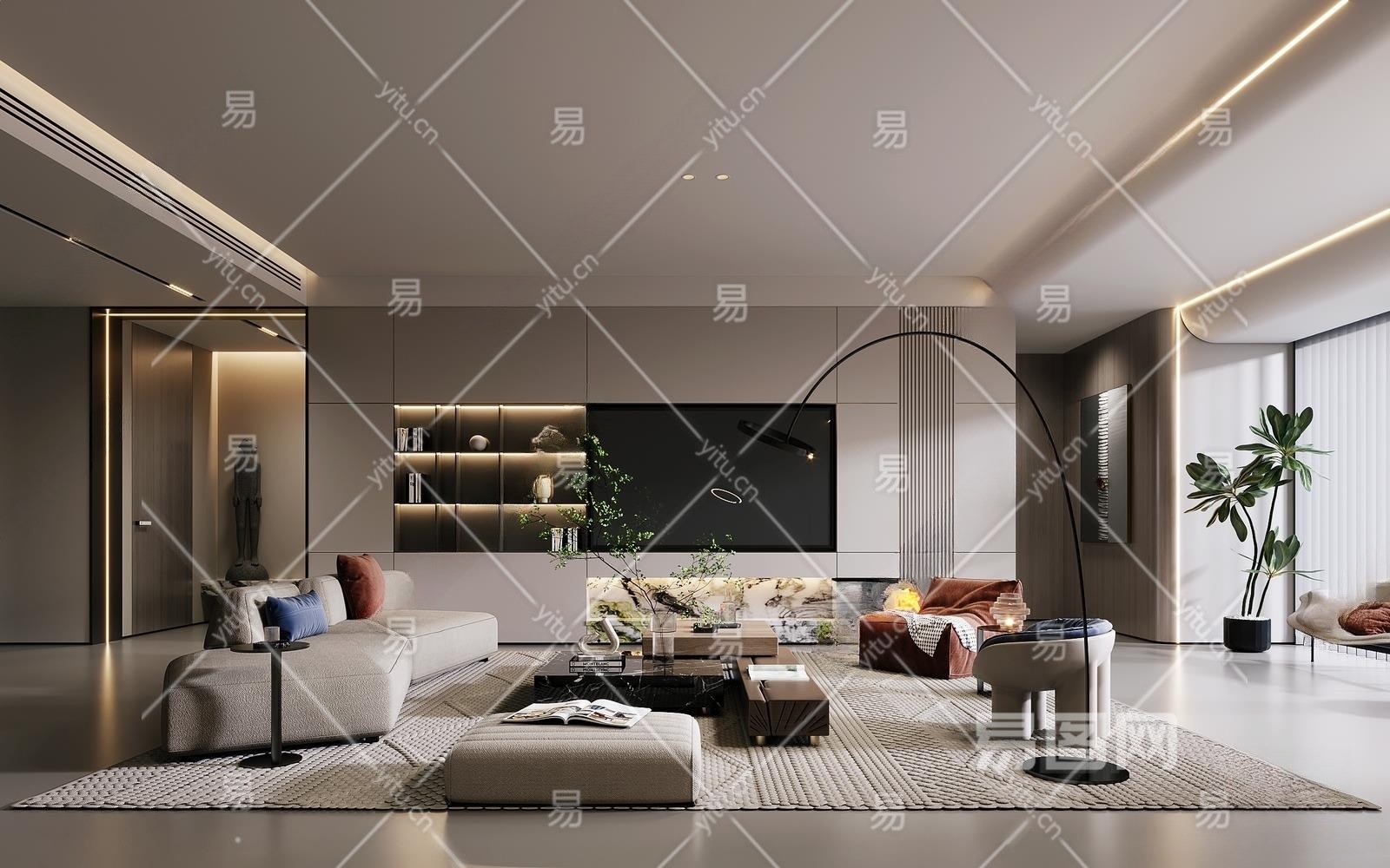 现代客厅3D模型下载