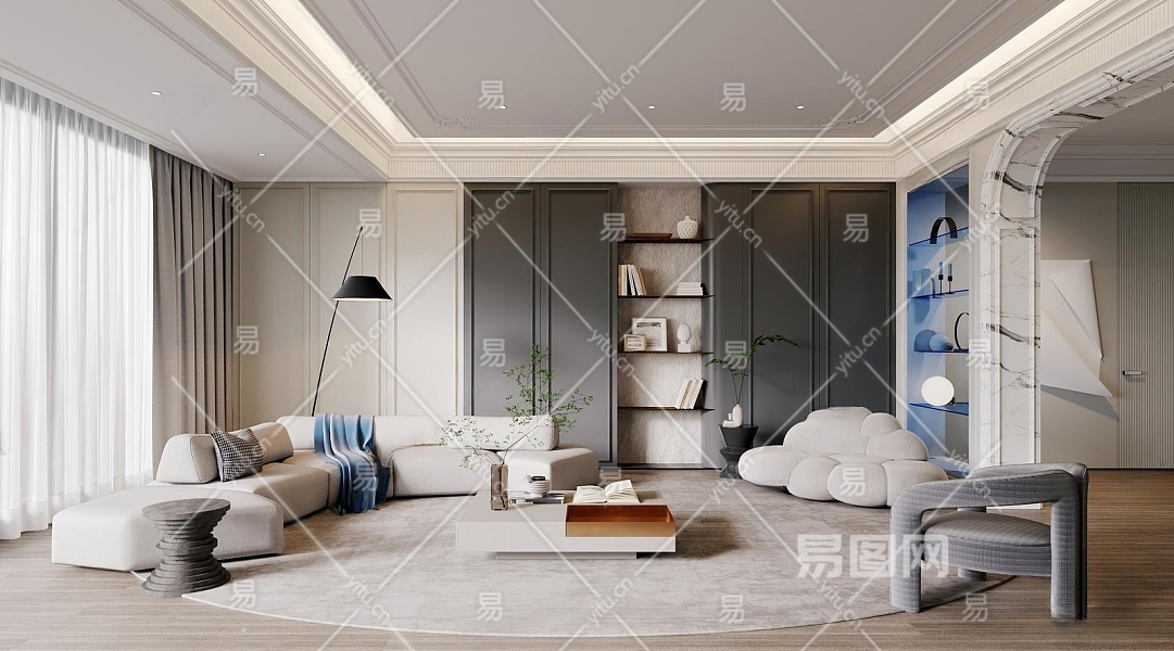 现代客厅3D模型下载