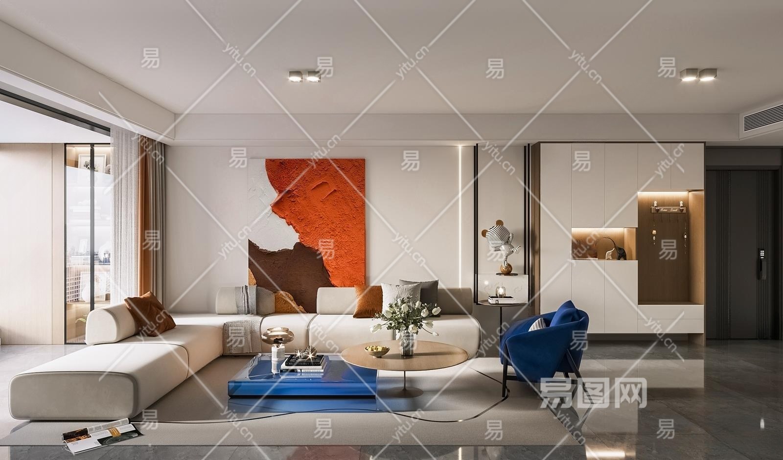 现代客厅3D模型下载