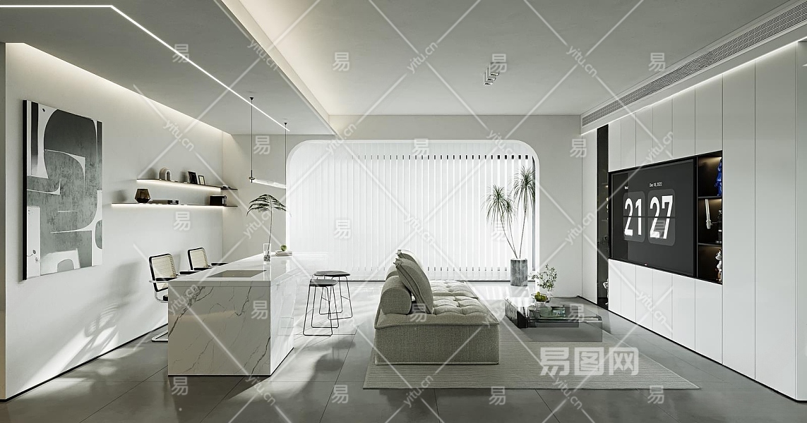 现代极简客厅3D模型下载