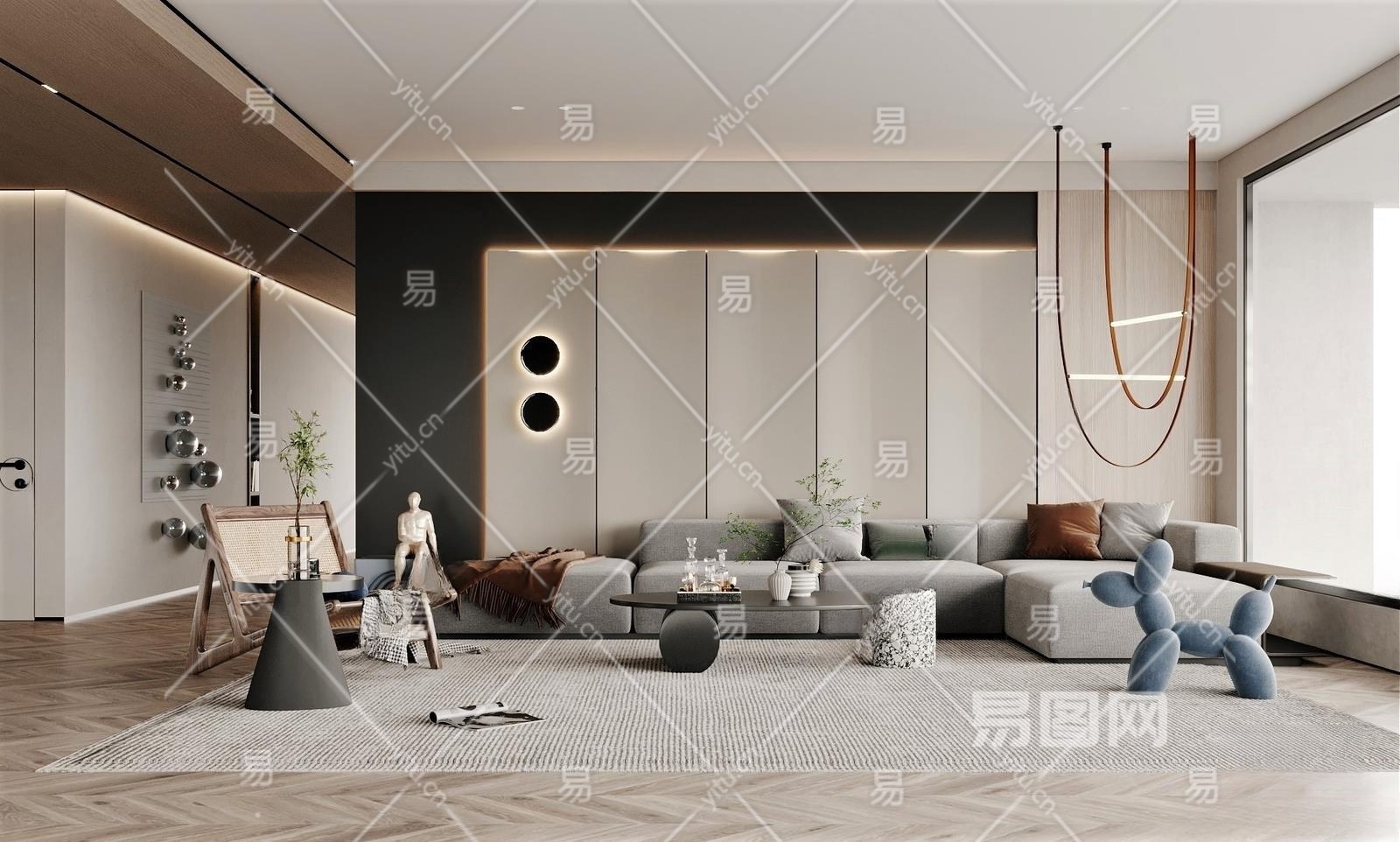 现代客厅3D模型下载