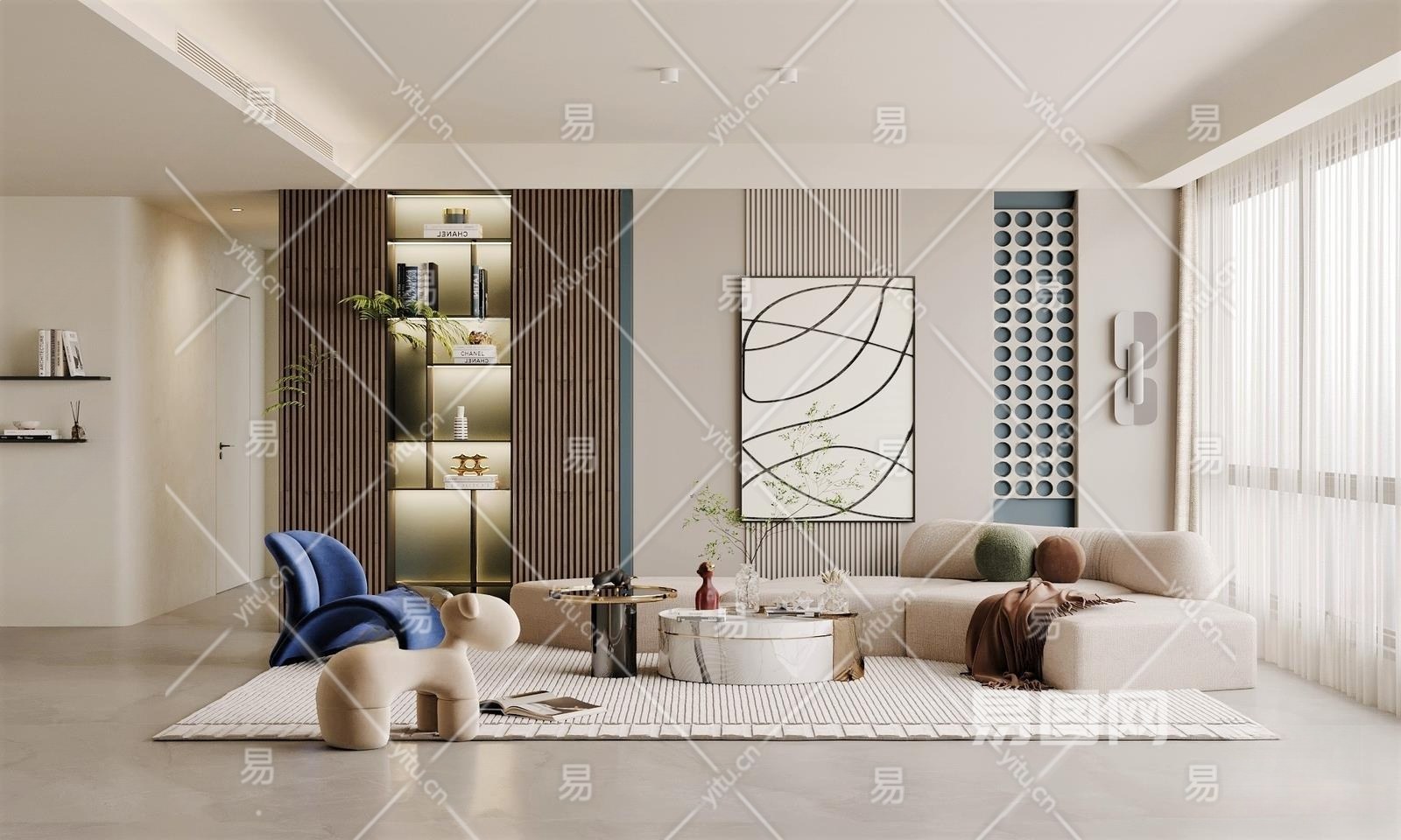 现代客厅3D模型下载