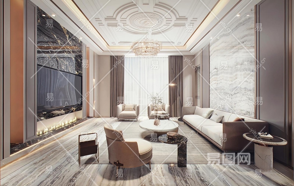 现代客厅3D模型下载
