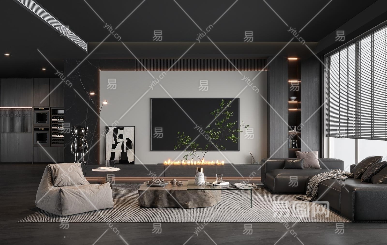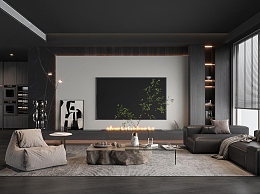现代客厅3D模型下载