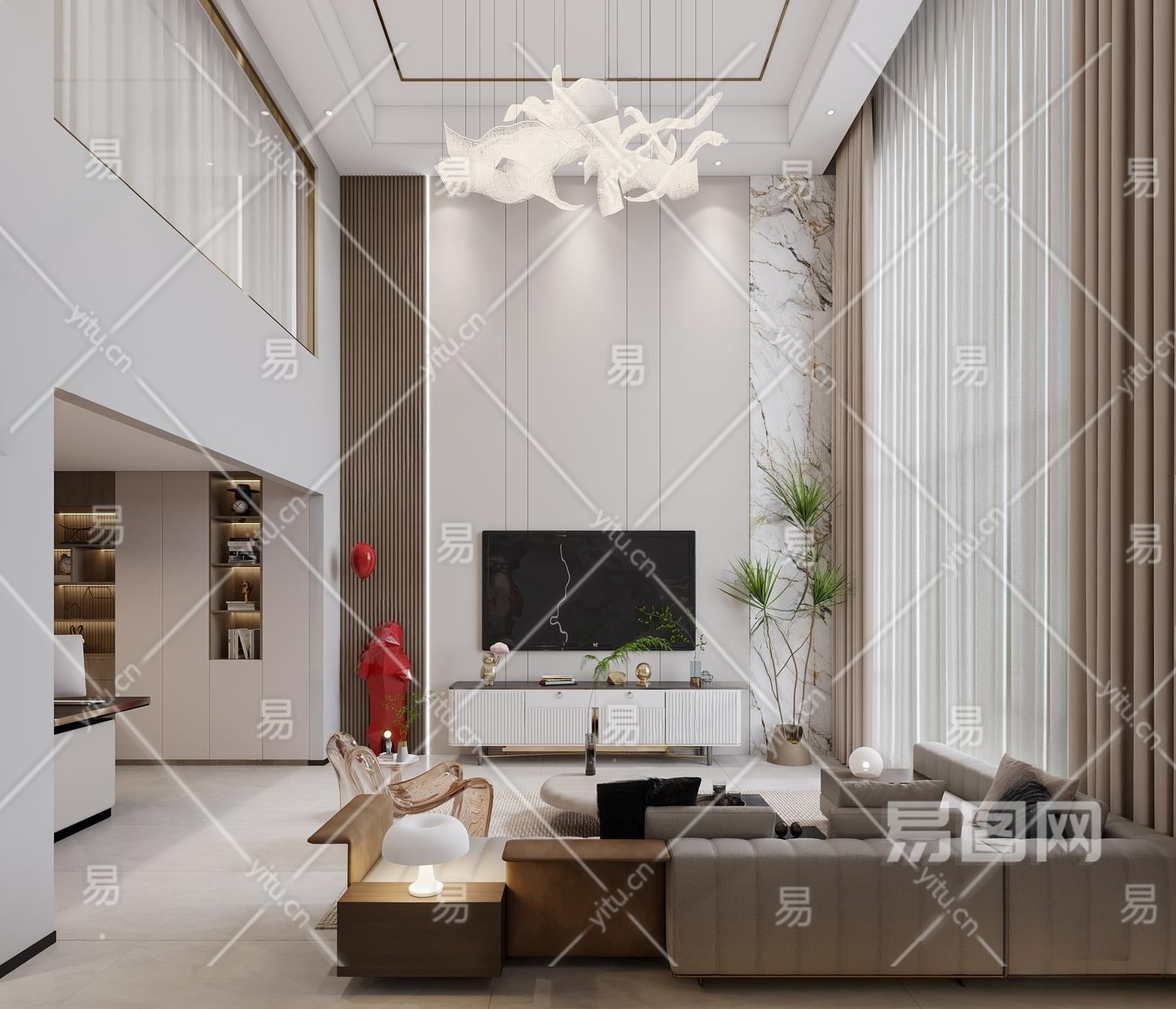 现代别墅客厅3D模型下载