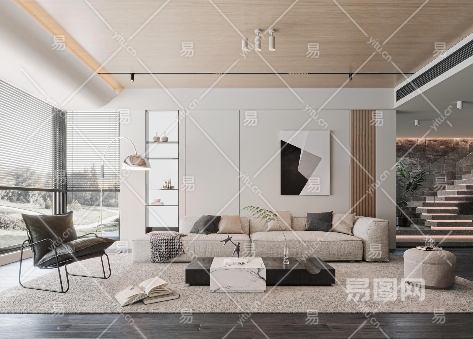 现代别墅客厅3D模型下载
