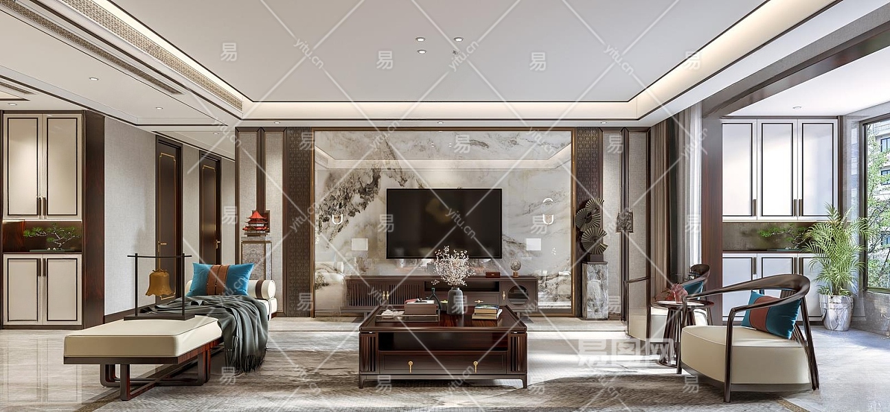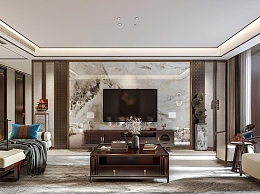 新中式家居客厅3D模型下载