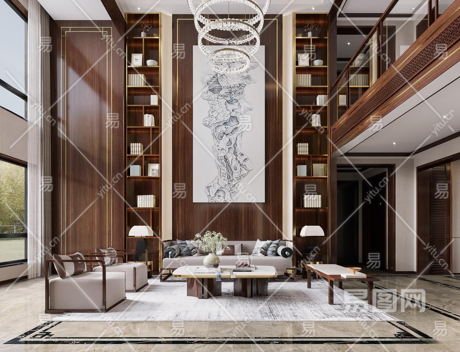 新中式别墅客厅3D模型下载