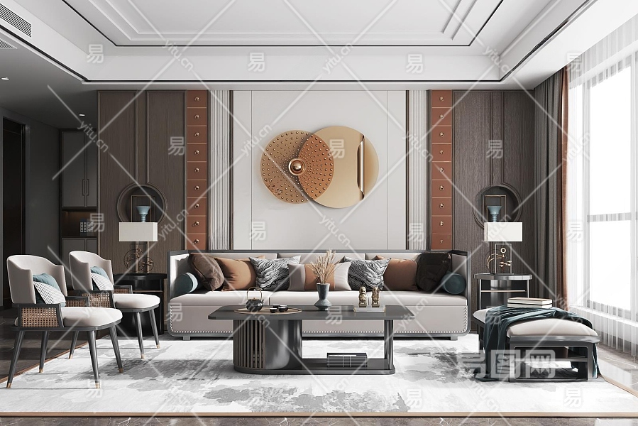 新中式家居客厅3D模型下载