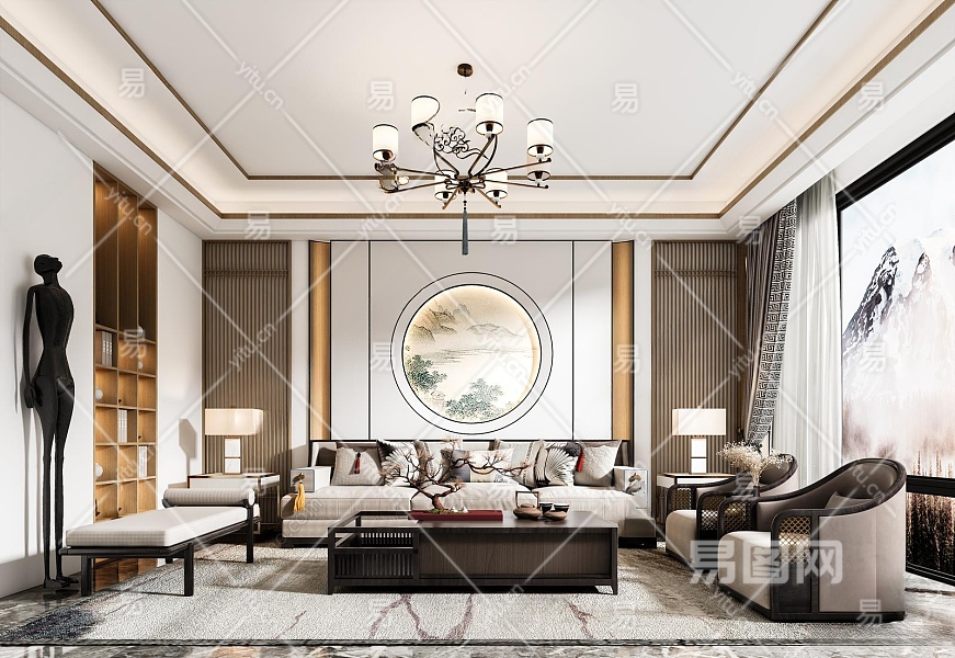 新中式家居客厅3D模型下载