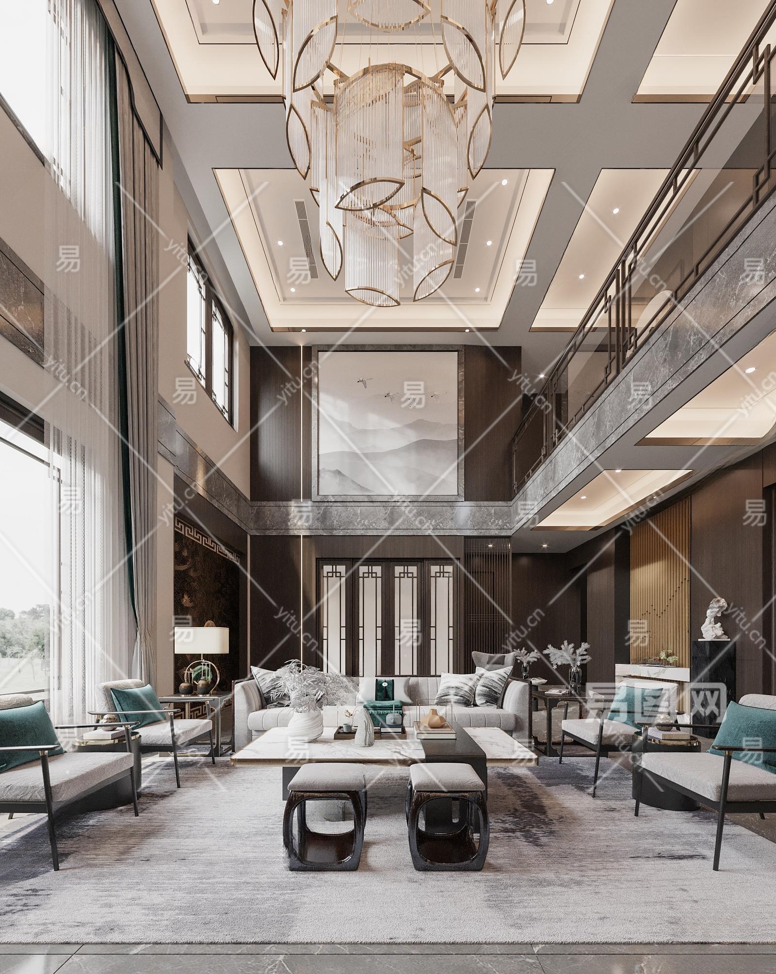新中式别墅客厅3D模型下载