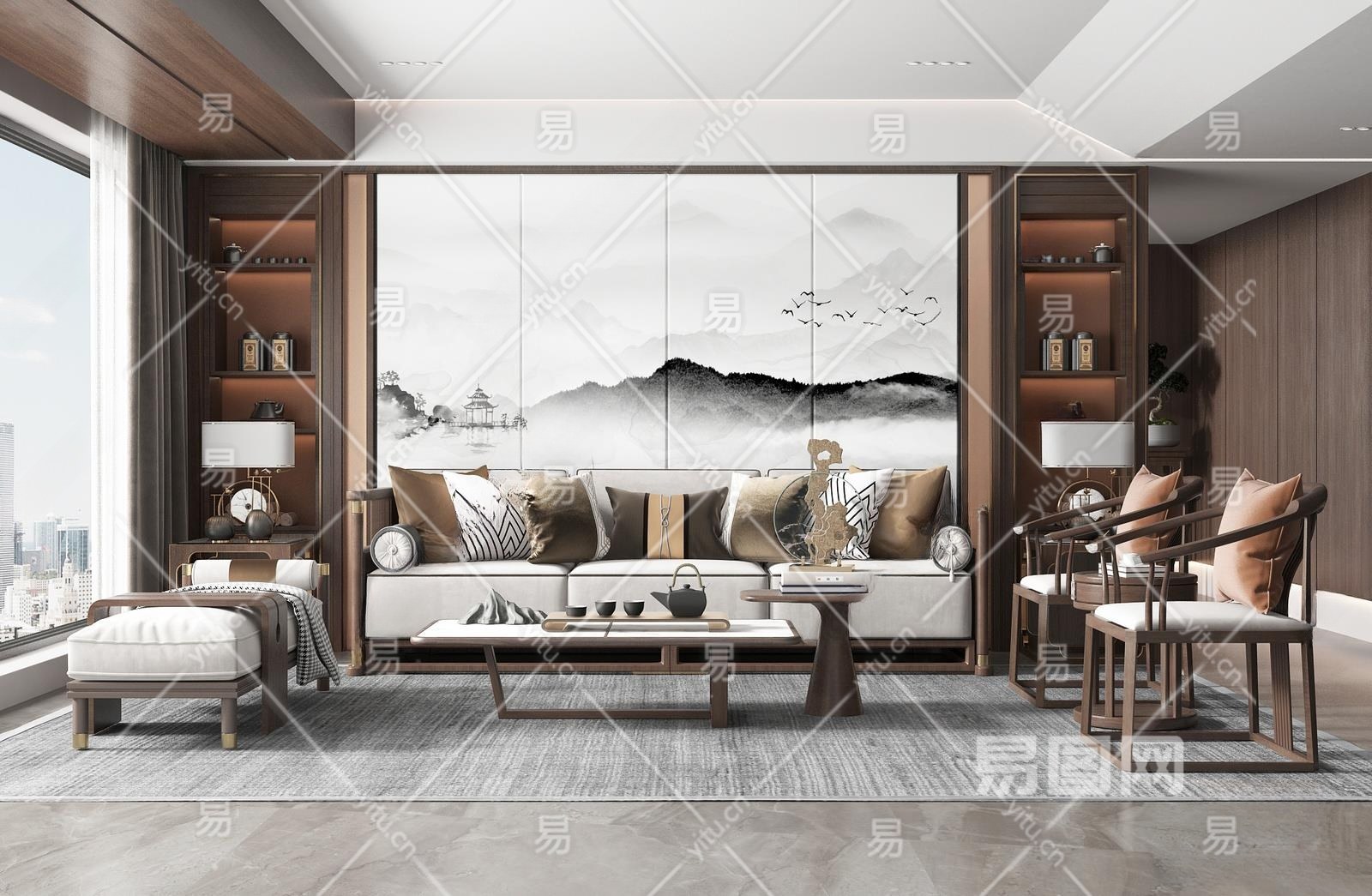 新中式家居客厅3D模型下载