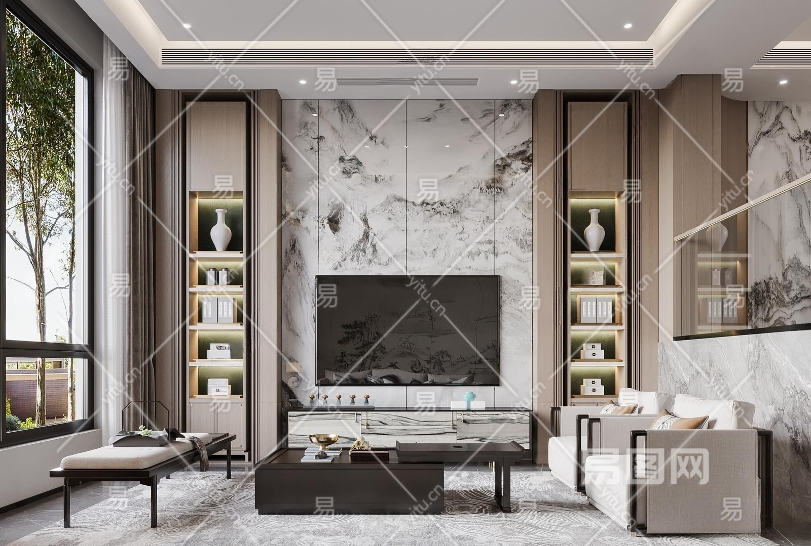 新中式客厅3D模型下载
