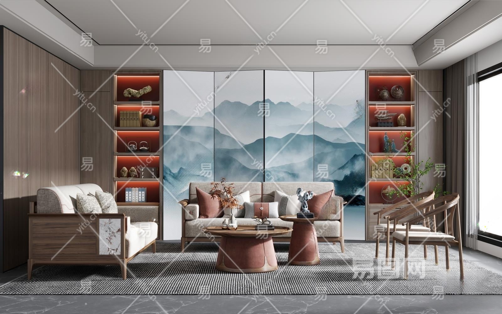 新中式家居客厅3D模型下载