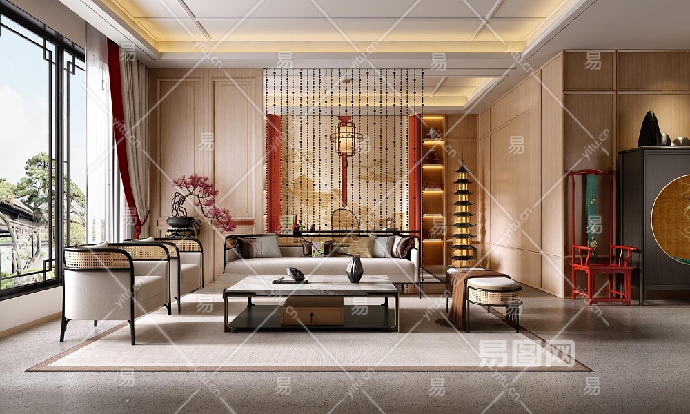 新中式客厅3D模型下载