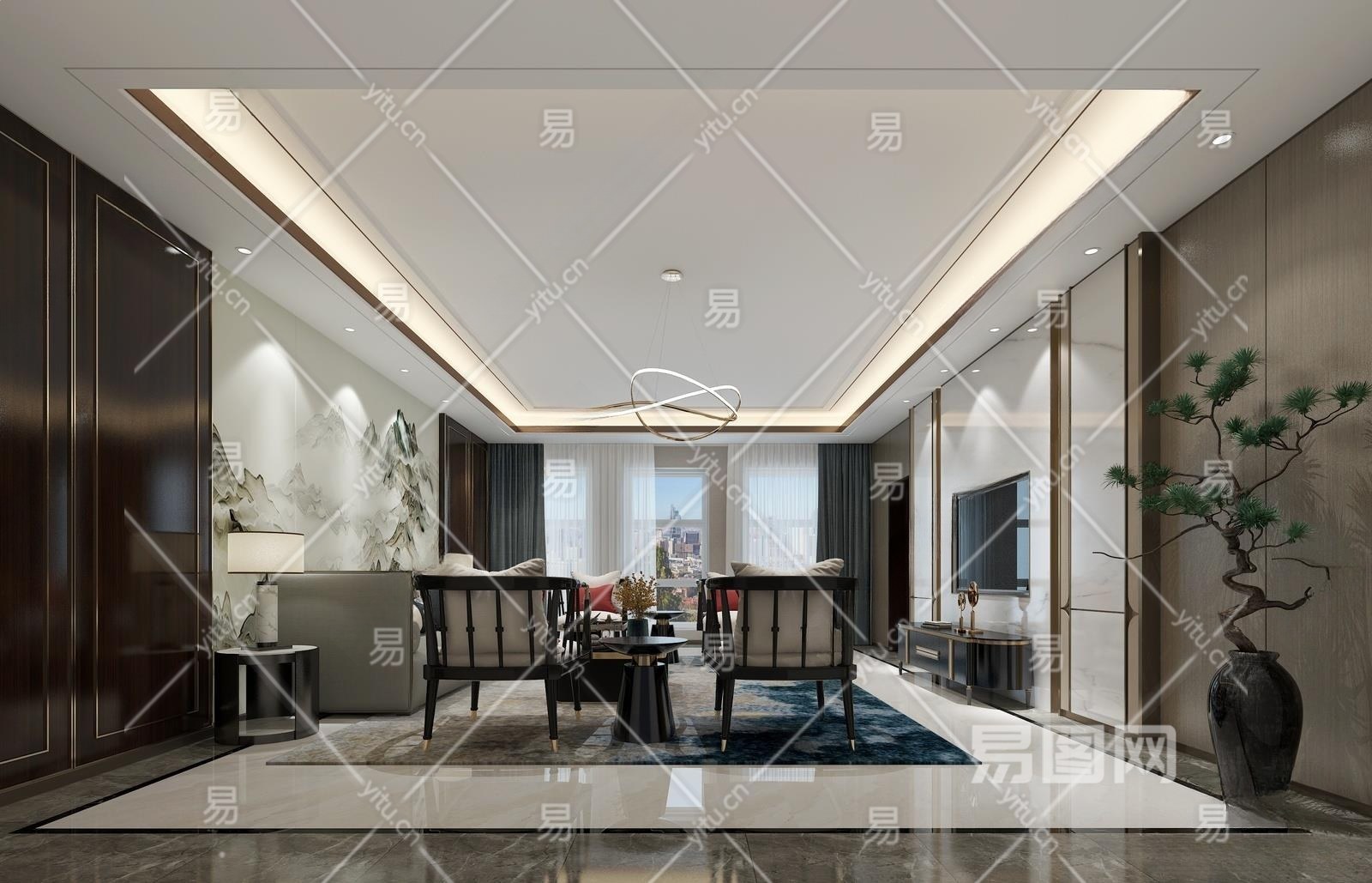 新中式客厅3D模型下载