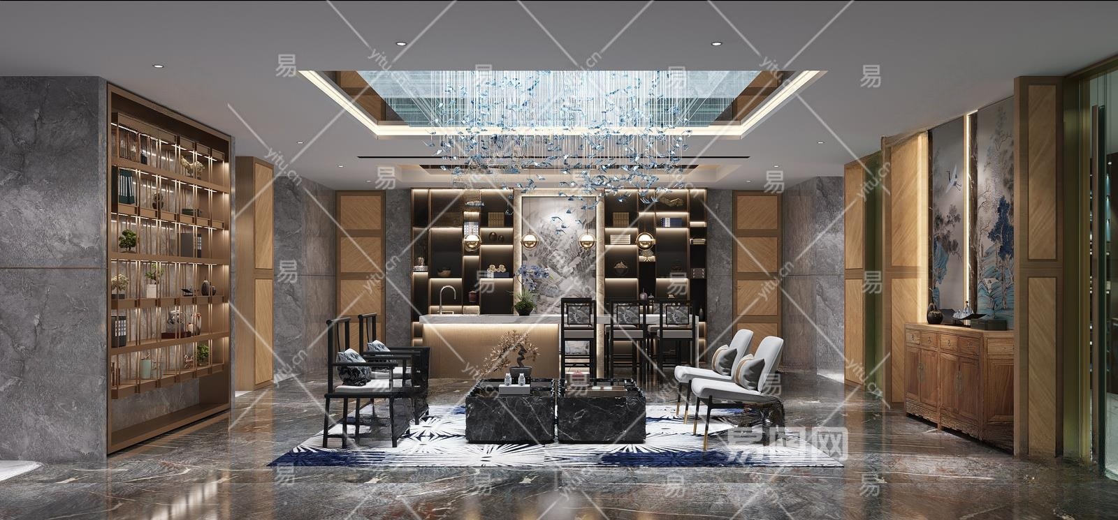 新中式客厅3D模型下载