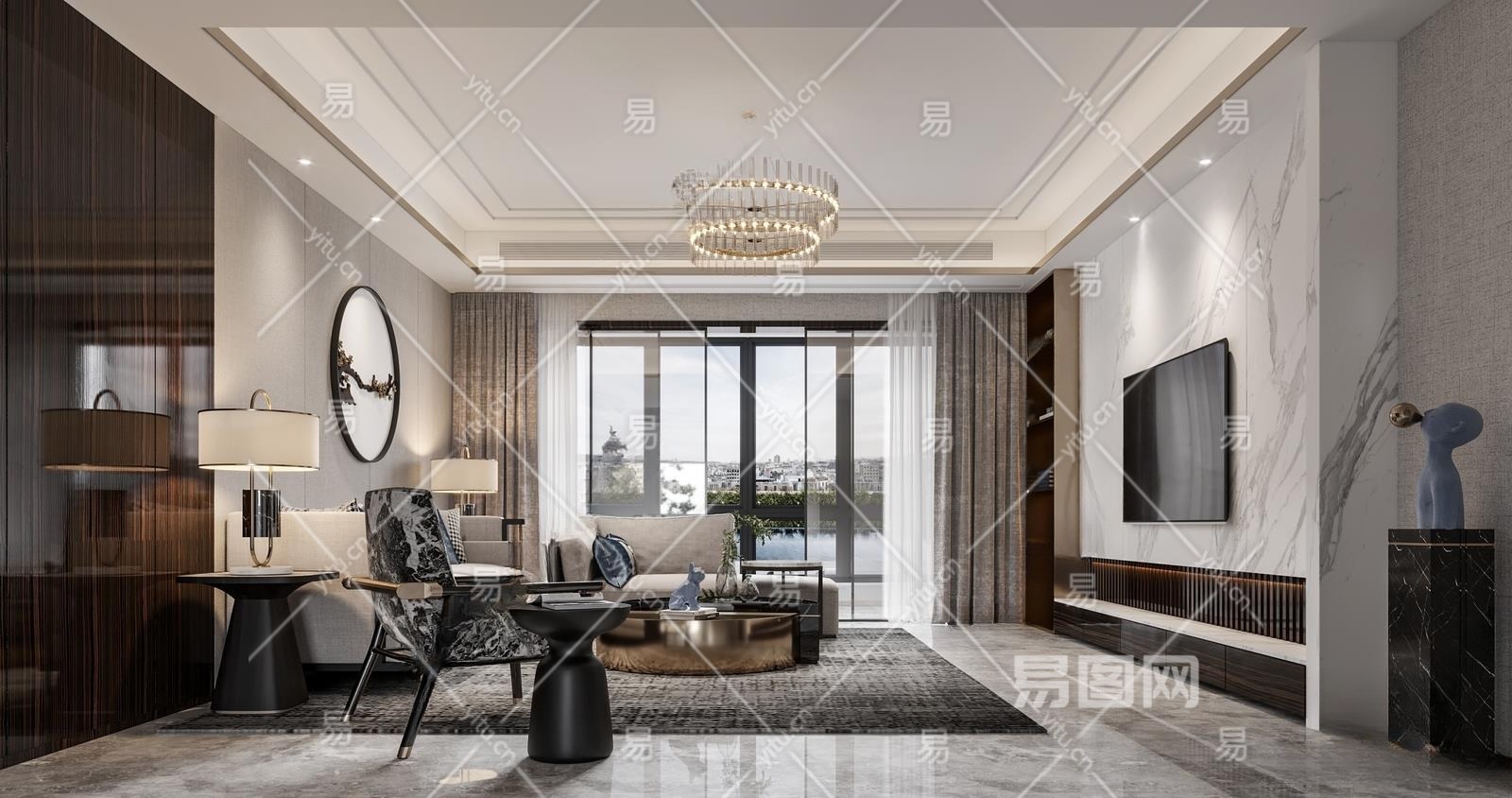 新中式家居客厅3D模型下载