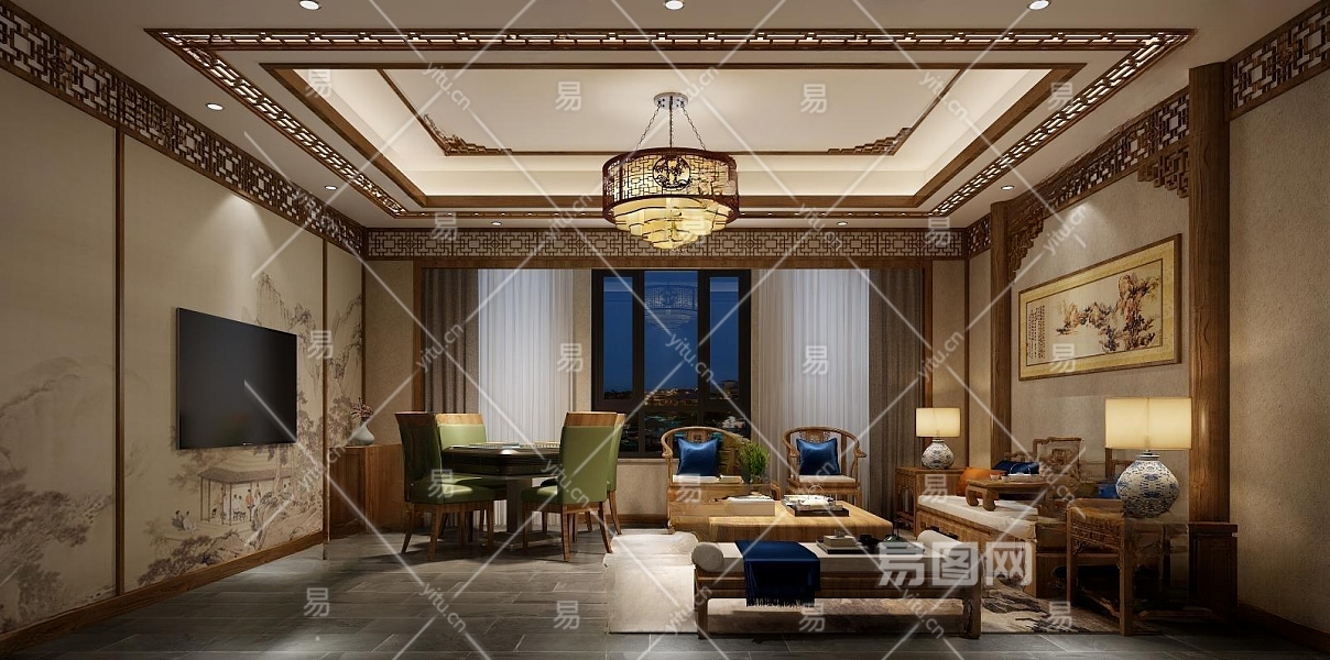 中式会客厅3D模型下载