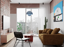现代工业风格砖墙木质元素客厅
