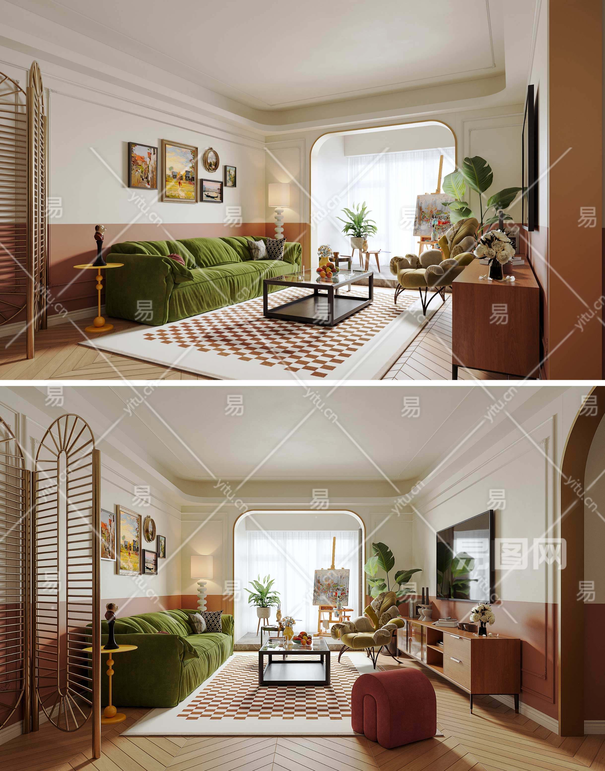 当前的位置:首页 > 3D模型 > 家装空间 > 客厅 > 复古与现代交融温馨艺术感客厅