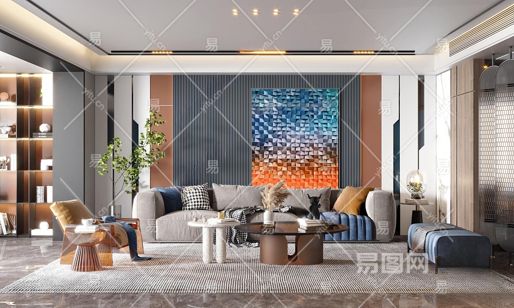 现代家居客厅3D模型下载