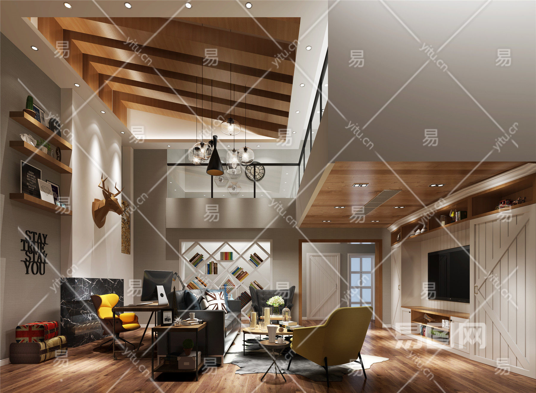 当前的位置:首页 > 3D模型 > 家装空间 > 客厅 > 北欧客厅 吊灯 书架 多人沙发 茶几 单人沙发