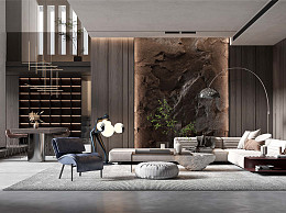 现代别墅客厅-27