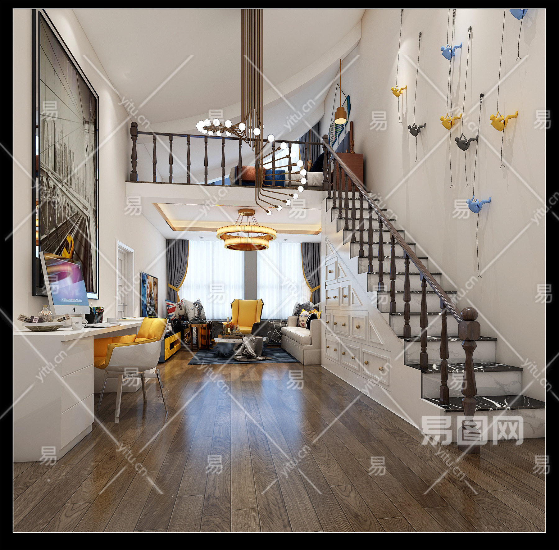 当前的位置:首页 > 3D模型 > 家装空间 > 客厅 > 现代复式客厅空间