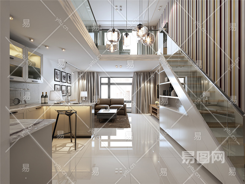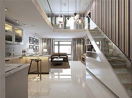现代简约loft客厅 loft吧台 loft厨房 loft楼梯