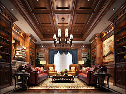美式客厅 书柜 吊灯