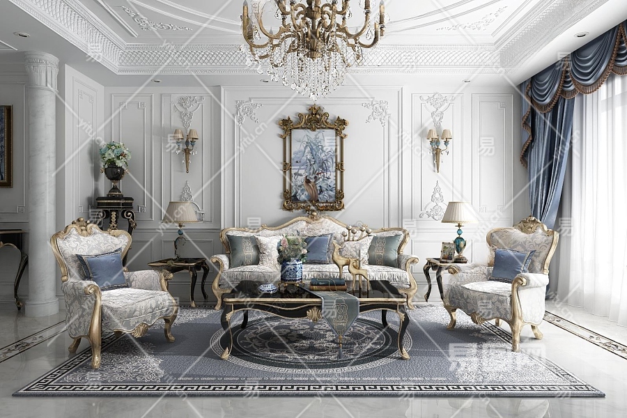 法式客厅3D模型下载