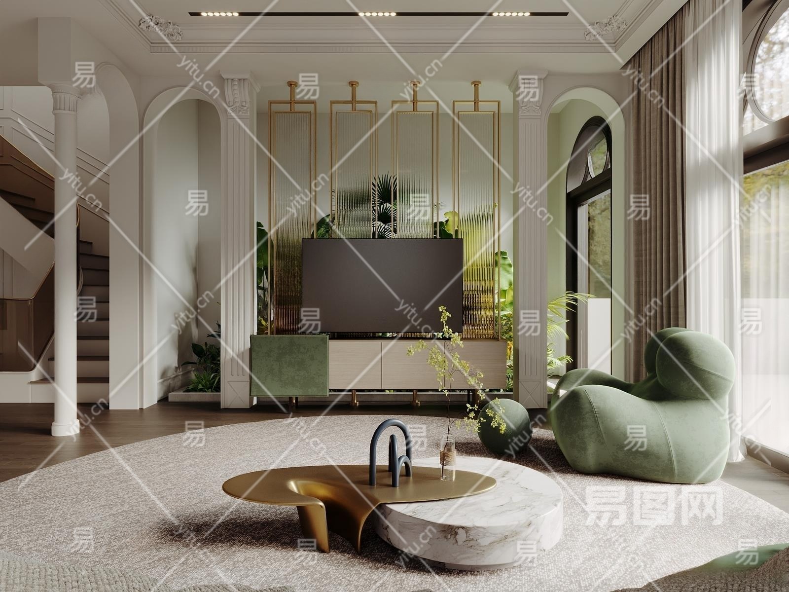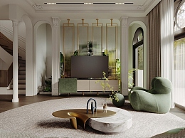 法式别墅客厅3D模型下载