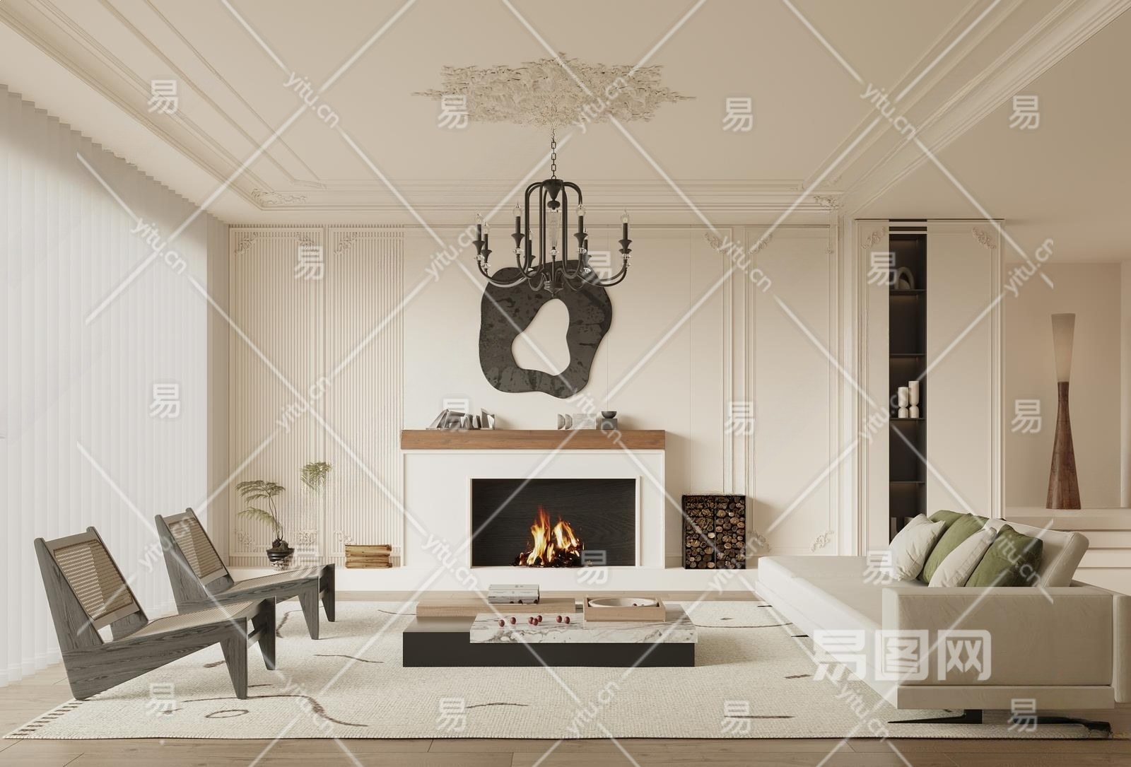 法式客厅3D模型下载