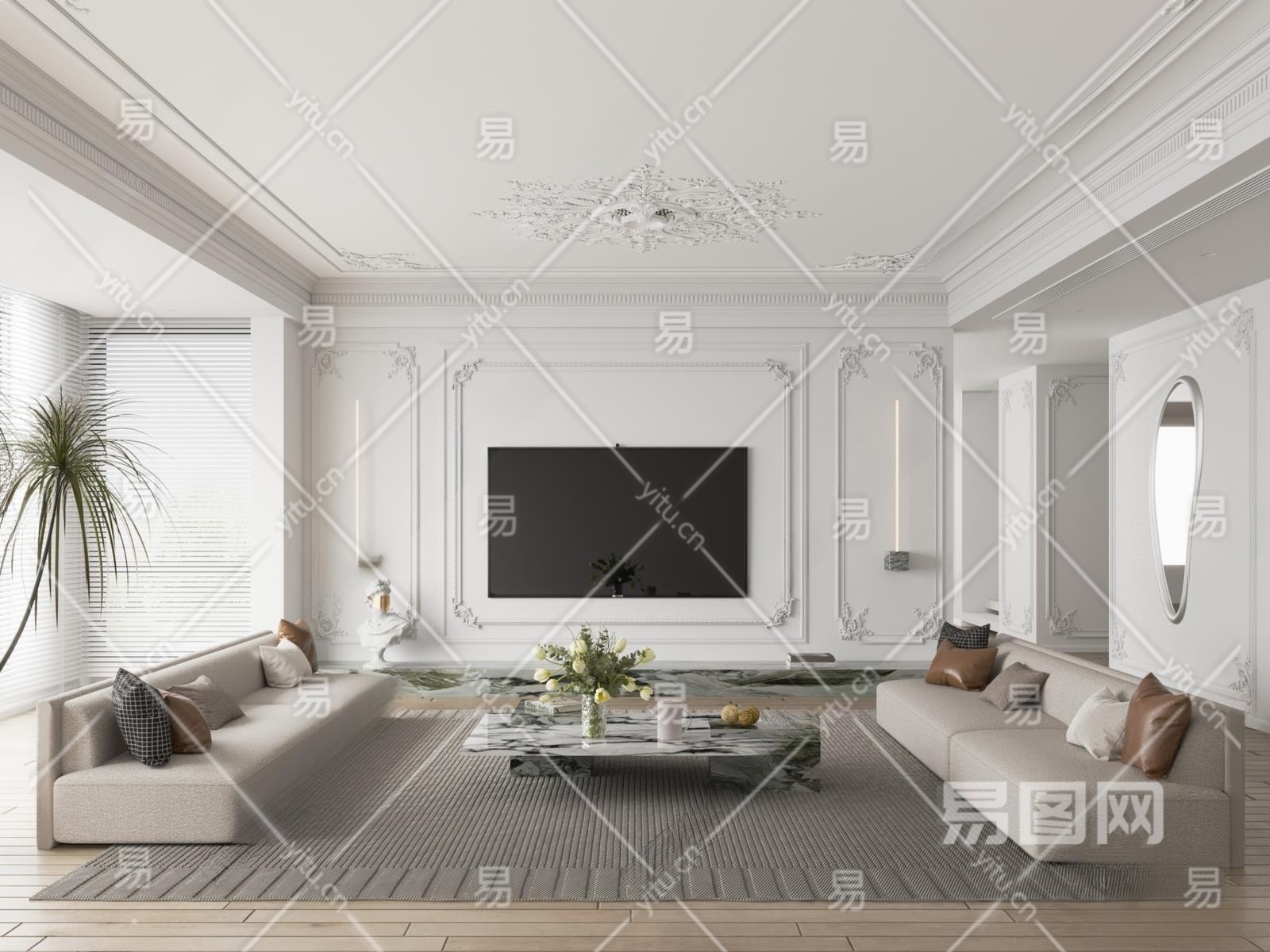 法式风客厅3D模型下载