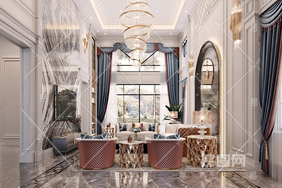 简欧别墅客厅3D模型下载
