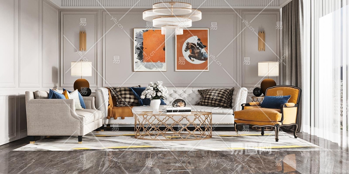 简欧家居客厅3D模型下载