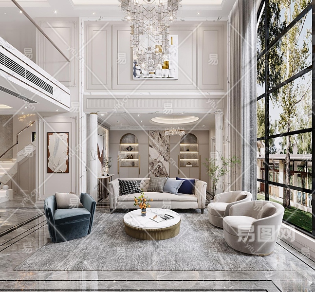 简欧别墅客厅3D模型下载